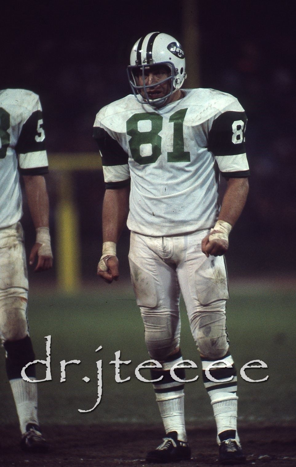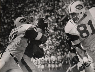 ![]() Mike Taliaferro (17), Gerry Philbin (81) Boston Patriots at New York Jets |