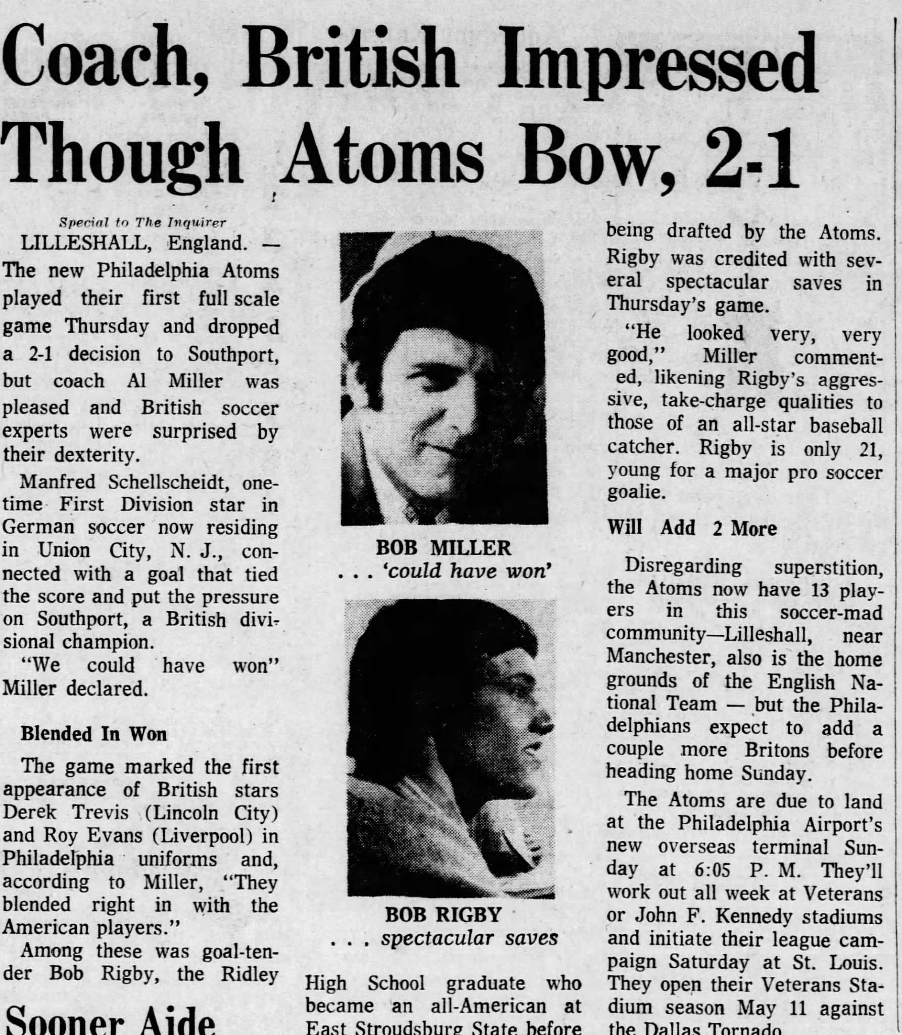 at Southport (Southport, England) Date: April 26, 1973 Atoms lost 2-1 Attendance: Goals: Atoms-Manny Schellscheidt |
