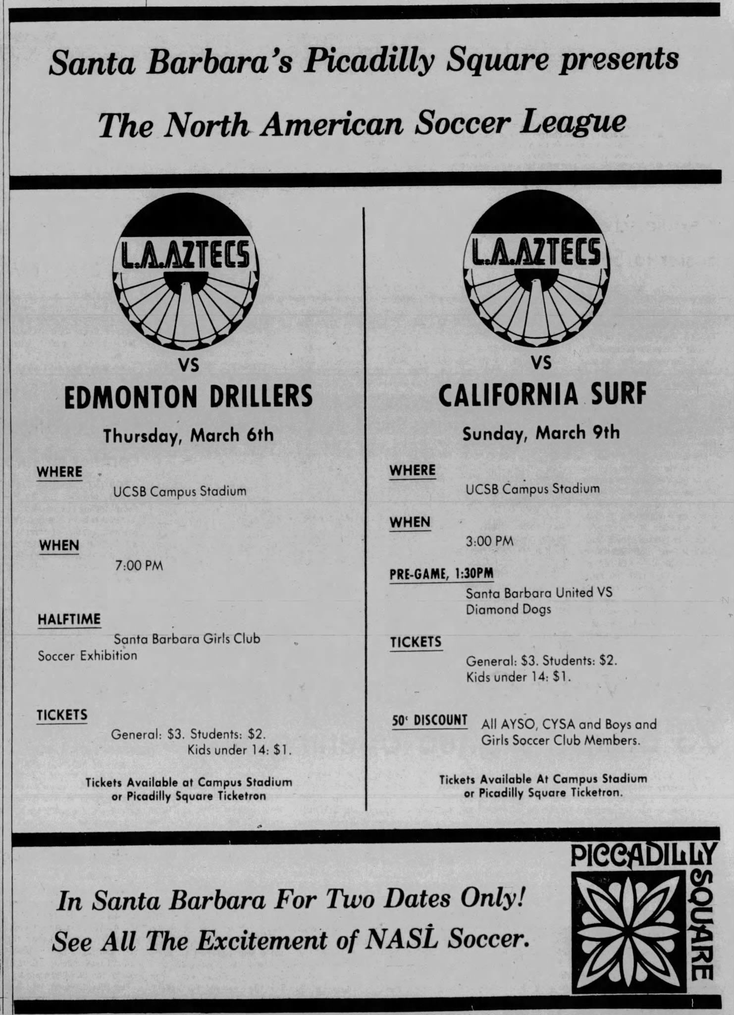Barbara, California) Date: March 6, 1980 Aztecs won 2-1 Attendance: Goals: Aztecs-Chris Dangerfield, Wim Suurbier Drillers-Dwight Lodeweges |