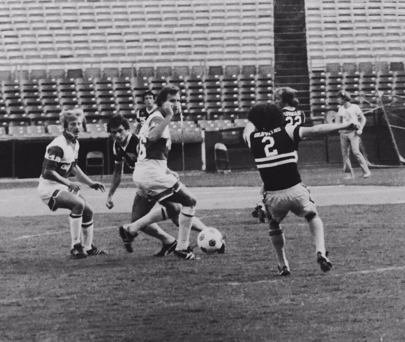 ![]() Pele (10), Clive Griffiths (4), Paul Pringle (11) Chicago Sting at New York Cosmos From www.gettyimages.com |
