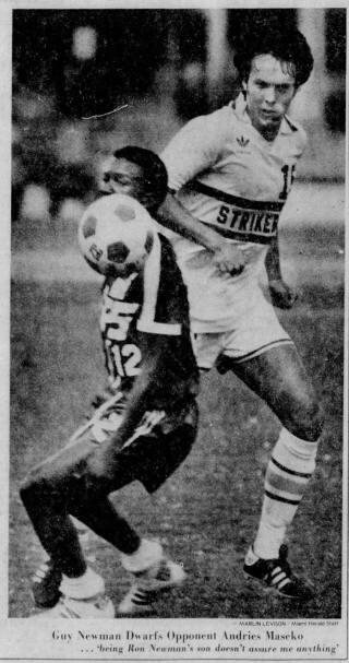 ![]() Guy Newman (13), Alan Mayer (G), Ian Anderson, Tony Glavin (22) San Diego Sockers at St. Louis Steamers |