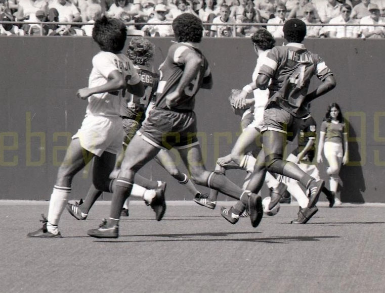 ![]() Tony Whelan (6), Pele (10), Tony Field (7), Ray Lugg (3) Ft. Lauderdale Strikers at New York Cosmos |